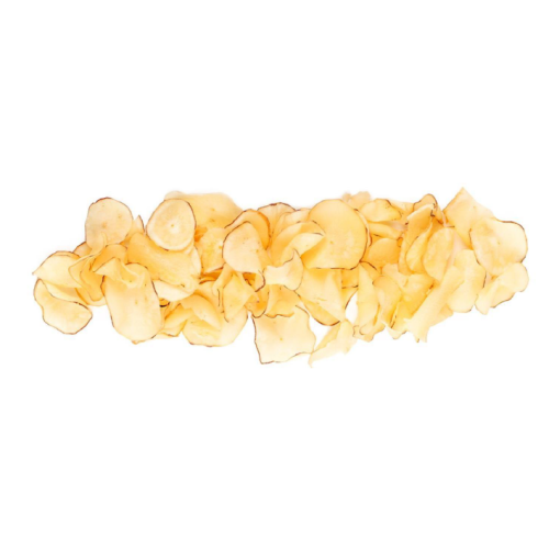 Yuca are brilliant cassava chips with a delicate taste, natural and enhanced only with pink salt. Very crunchy, they have a variable circular shape thanks to the craftsmanship of the processing. They come in a white/cream color with brown edges.